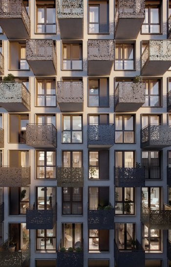 wykonane z najwyższej jakości materiałów zwiększają masę termiczną budynku, ograniczają dzienne wahania temperatur, a głęboko osadzone okna, dodatkowo osłonięte balkonami, redukują bezpośrednie nasłonecznienie lokali mieszkalnych od strony południowej, wschodniej i zachodniej.