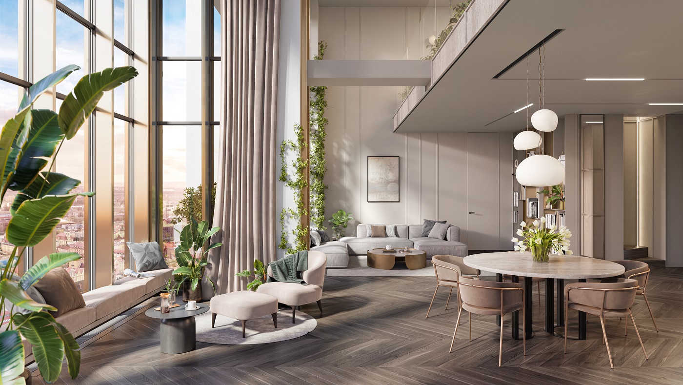 Przestronne penthouse’y oferują panoramiczny widok na miasto oraz bliskość z naturą. Każdy penthouse wyposażony jest w klimatyzację oraz przestronny taras. Tym, co wyróżnia penthouse’y na tle innych apartamentów w The Upper House by Angel to wysokie, 3-metrowe i 6-metrowe sufity, przeszklone ściany oraz panoramiczny prywatny widok na centrum Wrocławia.